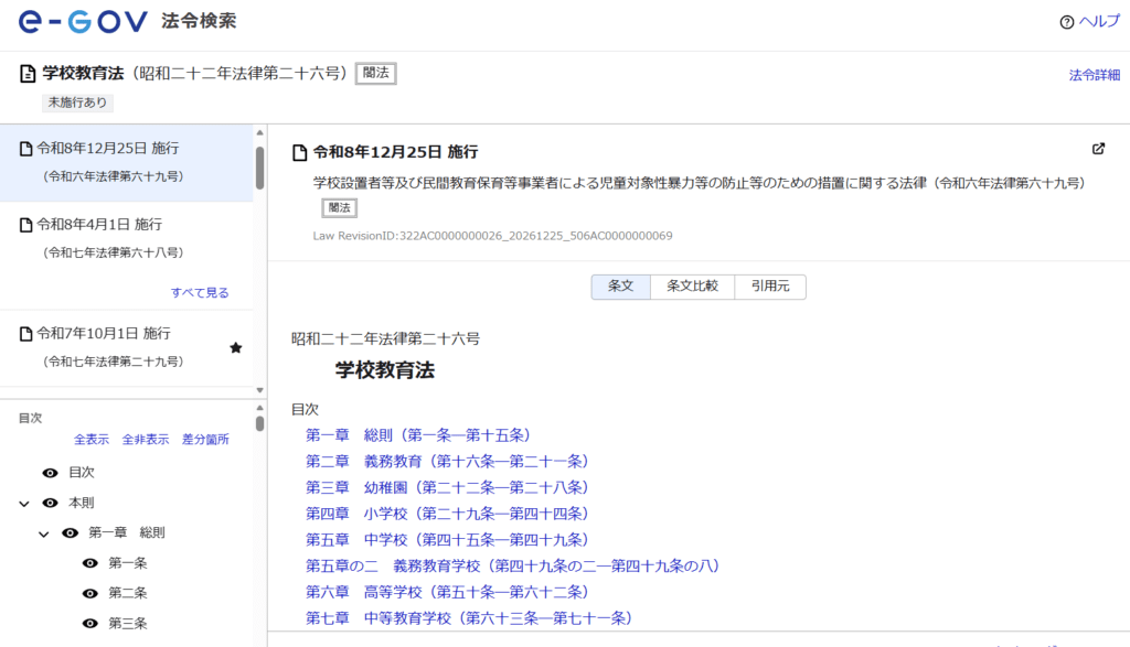 日本では、学校制度は「学校教育法」で定義されています。その第1条では