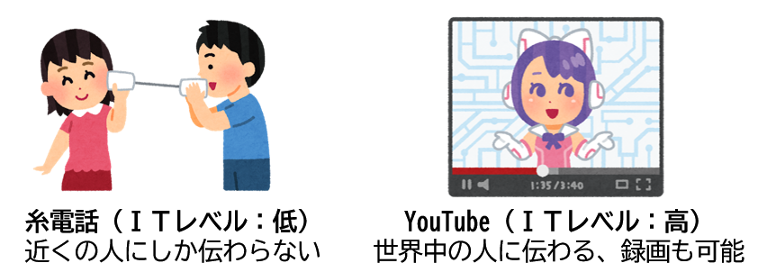 このように、情報を伝えるためには、何か技術が必要です。その技術がITです。