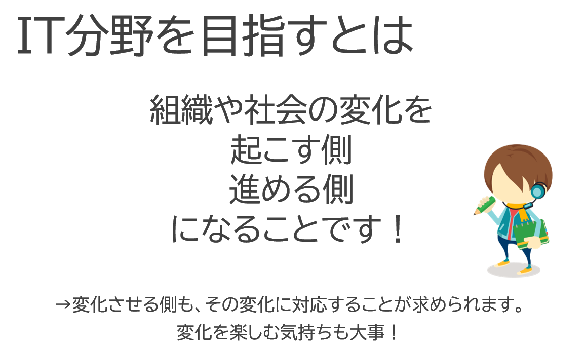 ITは、「組織」や「社会」を支えるとともに、その形を変えていく役割を持っているのです。