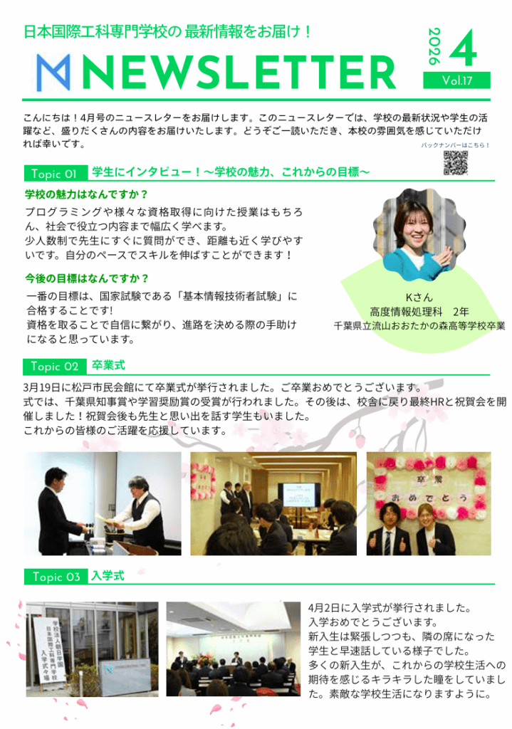 IT専門課程 2026年4月のニュースレターを公開しました