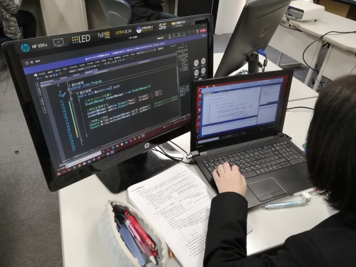 ITの理論を技術系学生と同じ科目で学び、ITパスポート試験から情報セキュリティマネジメント試験までの合格を目指します。授業は技術系と同じですが、目標資格に応じたクラス分けや資格対策を実施します。