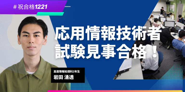 高校時代は別の分野を志望していましたが、手に職をつけたいと思い、ITの分野に興味を持つようになりました。基本情報技術者試験と情報セキュリティマネジメント試験の取得は、入学したときの目標だったので、合格した時は嬉しかったです。
