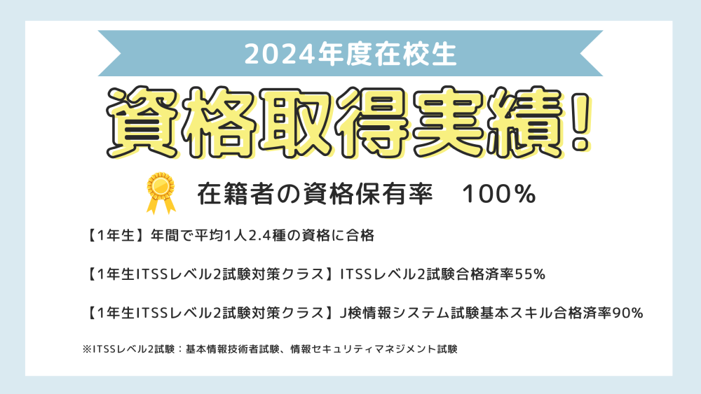 2024年度在籍者全員が何らかの資格試験に合格済。
